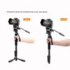 De NT-329M is een multifunctionele monopod van Nest welke bestaat uit drie delen. Aan de onderkant bevindt zich een voet met drie poten, deze kunt u eenvoudig op- en uitklappen. Tevens is de voet voorzien van een bol welke 360° graden kan draaien. Of u kunt de voet eraf halen door de schroef onderaan los te draaien, hierdoor krijgt u een stabiele lichtgewicht monopod. Dan hebt u in het midden de steel met schuimen handvat en de vier secties die u kunt verstellen doormiddel van de flip-locks.