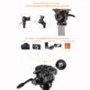 Verder heeft de steel een stevige pols strap. Bovenop bevindt zich de 360° panoramakop met snelkoppelingsplaat. U kunt de snelkoppelingsplaat vastzetten met behulp van de vleugelmoer aan de zijkant van de panoramakop. Ook de stand van de panoramakop kunt u met behulp van twee vleugelmoeren vastzetten. De speciale snelkoppelingsplaat maakt het mogelijk om te wisselen tussen het 1/4 male schroefdraad en het 3/8 male schroefdraad. Eveneens kunt u de panoramakop van het statief afschroeven waardoor een 3/8" male schroefdraad zichtbaar wordt. Als laatst heeft het statief ook nog een hendel aan de panoramakop waarmee u hem soepel kunt bewegen.