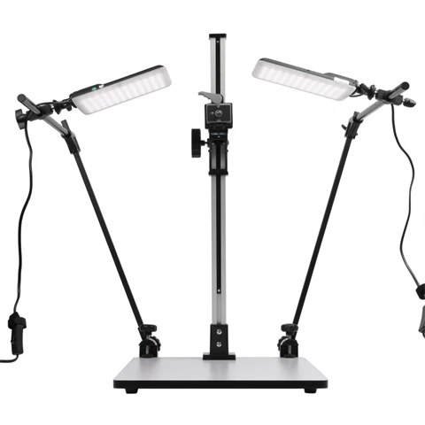Met de StudioKing CS-105 maak je snel een overzichtelijke werkplek om producten, documenten of creatieve projecten te fotograferen. De stevige kolom, het ruime werkblad en de twee heldere LED-lampen zorgen meteen voor een duidelijke en gelijkmatige verlichting. Zo kun je snel en precies werken, zonder gedoe. Dit is ideaal voor webshops, studio’s, hobbyisten en iedereen die nette en scherpe foto’s wil maken.