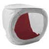 Het diffuus materiaal van de opnametent is geschikt om hinderlijke reflecties te minimaliseren en het licht egaal te verdelen. Het materiaal van de opnamebox geeft u een neutrale kleurtemperatuur. De voorkant van de tent kan worden afgesloten met het meegeleverde doek, die met klittenband wordt bevestigd. In het doek zit een opening waardoor u de lens van uw camera kunt plaatsen. Voor een ideale uitlichting is de box te gebruiken in combinatie met normaal daglicht, continulampen of studioflitsers.