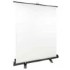 Wanneer u het scherm geheel uitklapt bedraagt de hoogte 200 cm; de breedte is 150 cm. Wanneer u het scherm volledig ingeklapt hebt, kunt u het via het handvat met u meedragen als een koffer. Dit roll-up achtergrondscherm is ook verkrijgbaar in andere kleuren (zie optionele accessoires).